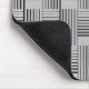 Black contemporary abstract weave pattern on a silver gray background.