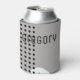 This can cooler has a geometric design made from two scalloped rectangles and a rectangle formed by rows of black dots. If you like the design but prefer different colors, message me.
