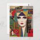 Abstract Woman Face Colorful Collage Postcard