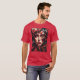 My 11 yo wore adult XL (5’7” 165#). The 8yo is small framed. She wore adult small and tied it in the back. Grandma wore adult large with long sleeve shirt underneath. Tall girl adult medium. Dark haired male adult large. Good quality dark Heather gray, Gildan brand shirt. -it was next up from basic choice and cost about $20 per shirt. Not too thick or thin. Washed and dried well, no major shrinkage. Not see-through. Can wear a bra under it fine. Screen print is just as shown and well done, front and back.