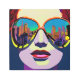 Pretty woman looking a the city skyscape through her sunglasses with a reflection of skyscrapers and city life colorful AI art. generativecontent