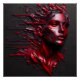 An abstract portrayal of a woman's face. In vibrant anodized red, the aluminum texture weaves a unique tapestry, adding a touch of abstract sophistication to the feminine form. Experience the fusion of color and texture in this captivating piece that evokes a sense of modern elegance.