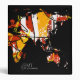 Abstract map of the world on solid black background, with the image of a small airplane, personalized with the name and initials of the stylish traveler... for various subjects related to travel, geography studies or others