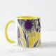 This colorful combo mug features an abstract swirly fractal in yellow, black and purple.