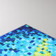 This abstract acrylic on wood artwork done in Impasto style is an original work by artist Edward Guthy titled Yellowfin Tuna. Vibrant colors of blue, white and yellow depicts a yellowfin tuna swimming in the deep blue sea.