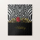 Abstract Zebra Flower Red Black White Gold Jigsaw Puzzle
