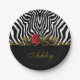 Abstract Zebra Flower Red Black White Gold Paper Plates
