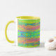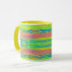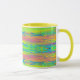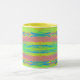 Coffee mug with abstracted bright background, horizontal colorful lines