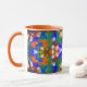 Coffee mug with abstracted ornamental background blue and orange shades