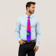 I bought this tie for a cosplay of Haruhi Fujioka for Halloween and anime conventions. It feels very nice and silky. It's my first tie ever, and I'm a pretty big fan since I always wanted a tie. It was longer than I expected it to be (quite a plus), but the purple stripe was also thinner than I expected it to be (a slight bit of a downer, but I don't mind too much). I had never used Zazzle before, but I am very impressed with the shipping time. I was looking for places to get a tie like this so last minute since the ties like this on Amazon were incompatible with Prime. Thus, I ended up here. I paid for express shipping, expected delivery October 30-31, and it arrived in the morning on the 30th. Very impressed. I might just use Zazzle again. The print job was okay. The colors were perfect, but as you can see in the pictures, the stripe was a little off-center, and there was a kink in the stripe around where it transitions from the wide end to the thin end. It should work perfectly for my cosplay, but it was a little too carelessly print to be a very professional tie.