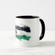 This mug showcases the Palestinian flag in an artistic and unique way. The flag illustration is presented in rough, abstract brushstrokes, creating a dynamic and expressive feel. The flag's colors (black, red, green, and white) blend together with a messy watercolor or brushstroke effect, framing the flag area in the center of the mug.