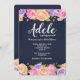 A stunning floral invitation with a navy-blue background and an abundance of pink, lavender, and yellow flowers bordering the top and bottom edges of the card. (Design by Freepik). <br/><br/>The card is easy to customize with your wording, font, font color and choice of six paper types.<br/><br/>Not exactly what you're looking for? All our products can be custom designed to meet your needs at no extra charge.<br/><br/>Simply contact us at askcottonlamb@gmail.com<br/><br/>Coordinating products available: