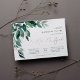 Elegant b'nai mitzvah invitation features watercolor eucalyptus leaves and green foliage cascading from the upper left corner, embellished with rose gold foil accents. Personalize with your temple ceremony and celebration details aligned at the right. Cards reverse to solid forest green.