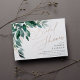 Elegant bridal shower invitation features watercolor eucalyptus leaves and green foliage cascading from the upper left corner, embellished with rose gold foil accents. Personalize with your bridal shower details aligned at the right. Cards reverse to solid forest green.
