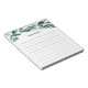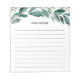 Chic botanical notepad features a top border of green watercolor foliage and eucalyptus leaves. Personalize with your name or choice of personalization in handwritten script lettering. Lined.