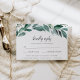 Elegant botanical RSVP card features green watercolor eucalyptus leaves and foliage with inky off-black calligraphy and block lettering. Personalize with your desired RSVP date as well as custom accept and decline wording. Includes space for guests to indicate their choice of entree or meal ahead of time. Designed to match our Abundant Foliage invitation collection.