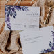 Elegant bat mitzvah invitation features blue and purple watercolor leaves and foliage cascading from the upper left corner, embellished with rose gold foil accents. Personalize with your temple ceremony and celebration details aligned at the right. Add your RSVP information and additional details to the back.