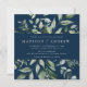 Abundant Greenery Navy Square Wedding Invitation