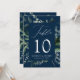 Elegant, botanical wedding table cards featuring the table number, your names, and wedding date nestled in a rectangular frame surrounded by eucalyptus, ferns, and other rich greenery with a navy background. Personalize the number for each table card and add it to your cart. The 5x7 table cards were designed to coordinate with our Abundant Greenery wedding collection.