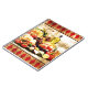 Digital art panel features an abundance of food and cooking ingredients on a distressed harlequin background.