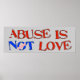 Cracked and tilted words spell out "abuse is not love" with a bandage over the letter "o" in Not. Reminder to those who find it impossible to walk away because they believe their abuser loves them.