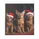 An enchanting scene captures the essence of coziness and holiday spirit as furry companions adorned in Santa Claus hats gather around a crackling fireplace. The warmth emanating from the hearth creates a snug atmosphere for these adorable canines, while festive stockings hang in the background, enhancing the merry ambiance. The charming illustration portrays a timeless image of companionship and festive joy, perfect for celebrating the holiday season with a touch of canine charm