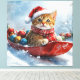 Abyssinian Cat in Sledge Let it Snow Christmas Canvas Print