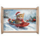 Abyssinian Cat in Sledge Let it Snow Christmas Serving Tray