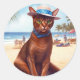 Abyssinian cat on Beach, summer gift for cat lover Classic Round Sticker