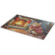 Abyssinian Cat Sitting by Fireplace with Christmas Cutting Board