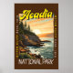 Acadia vector artwork design. Acadia National Park is primarily on Maine's Mount Desert Island. Its landscape is marked by woodland, rocky beaches and glacier-scoured granite peaks such as Cadillac Mountain.