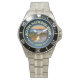 Has heft and feel of expensive stainless steel quartz watches. Good band with safety catch. I removed links, which is easy because engraved arrows show direction to push the linking pins. As always by this seller, the image (a railroad logo) is a perfect reproduction of my emailed image, and is precisely spaced and aligned.