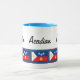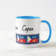Show your Cajun pride with this mug featuring a blue stripe with a red border filled with the flag of Acadiana. The mug reads Cadien Acadian Cajun. Keep this text or personalize it with your own message. Click customize it to change the font and text placement.