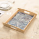 This is a well made, sturdy wooden tray with a flawless black finish and lovely map on the tray surface. It is both vintage & modern at the same time. Looks exactly like the photo; does not disappoint. So nice to find something of quality individually made and not the mass-produced 'shabby chic' merchandise seen in stores. I am so pleased to be able to give this to my college-age niece for her birthday. This can be used as a tray to hold jewelry or toiletries, or hung on the wall as art. The map surface is sealed (it is slightly shiny) so would be moisture resistant. It is well worth the asking price but I was able to apply a sale code as well. Very happy with my purchase. Map is crisp & clear and sealed with a water-resitant finish.