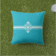 This accent throw pillow is shown in a turquoise color with a lovely decorative element print.
