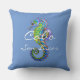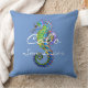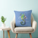 This accent throw pillow is shown in a pretty seahorse art print with text "Cabo San Lucas" across the front.