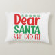 Add holiday humor to any room with this accent pillow! Featuring “Dear Santa, She Did It” in bold festive lettering, it’s perfect for couches, chairs, bedrooms, or holiday parties.