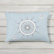 Graphic image of a white ship's helm in center with small anchors and ropes in upper right and lower left corners. Medium blue background may be customized.