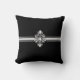 This accent throw pillow is shown in black with a lovely decorative element print.