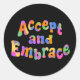 Accept and Embrace Rainbow Typography Classic Round Sticker