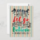 "Accept what is, let go what was, believe in what will be." Word art postcard with striped background