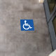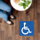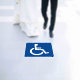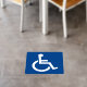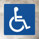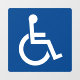 Accessibility sign. Wheelchair symbol. Stylized white person on a wheelchair. Blue background.