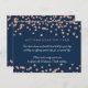 Elegant wedding Accommodation Card design with Rose Gold Faux Glitter Confetti Navy Blue and custom names and date text.