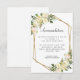Chic elegant and formal Wedding Information enclosure card features romantic wedding roses in watercolor vanilla white with hints of blush pink displayed in leafy greenery on a crisp white background. A sparkling golden color geometric crystal-shaped frame provides a trendy touch. Traditional, classic wording provides timeless sophistication. Personalize wedding details for your guests in elegant black lettering and script. The back of the card is chic white. Feel free to contact me at invitationsuites@gmail.com if you have questions regarding this or any of our designs.