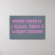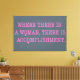 In pink text it reads: "Where there is a Woman, there is Accomplishment." The O's in the quote are actually the sign for Female.