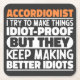 Funny Accordionist Sayings "Accordionist I Try To Make Things Idiot Proof But They Keep Making Better Idiots". Grab this Funny Accordionist design as a funny gifts for an awesome mom, dad or friend.