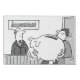 Gift for an accountant. Canvas for an accountant. Accountant behind the reception desk at his office is surprised to see a Client entering carrying a large Piggy Bank.