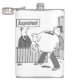 My cartoon will be appreciated by anyone who works in accountancy or finance perhaps. The image shows an accountant who is surprised to see a client enter his office carrying a giant piggy-bank. The black and white cartoon appears on the front of the flask.