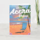 Accra Ghana beach travel poster, with a deck chair and palm tree on the Ghanaian beach.