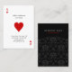 Custom business card template as the ace of hearts playing card with red heart and vintage style illustration of elegant damask pattern on the back.